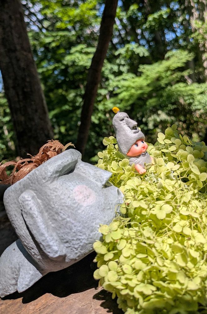 ノリウツギに乗ってるモアイ,可愛いですね💙