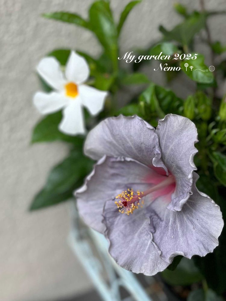 鮮やかな色のハイビスカスしか見たことなくて、なんとも言えない素敵なお色💜