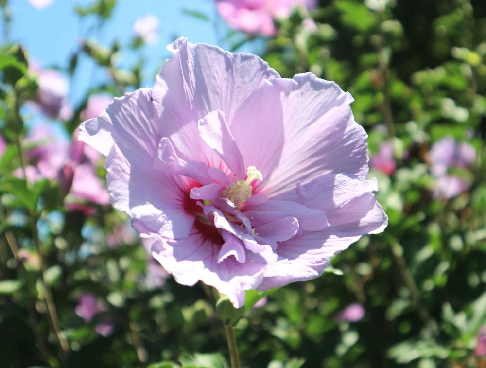 このムクゲはラベンダーシフォンといって、八重咲き品種。公園には何種類ものムクゲが咲いているけど、私はこの色が良かったわ🥰