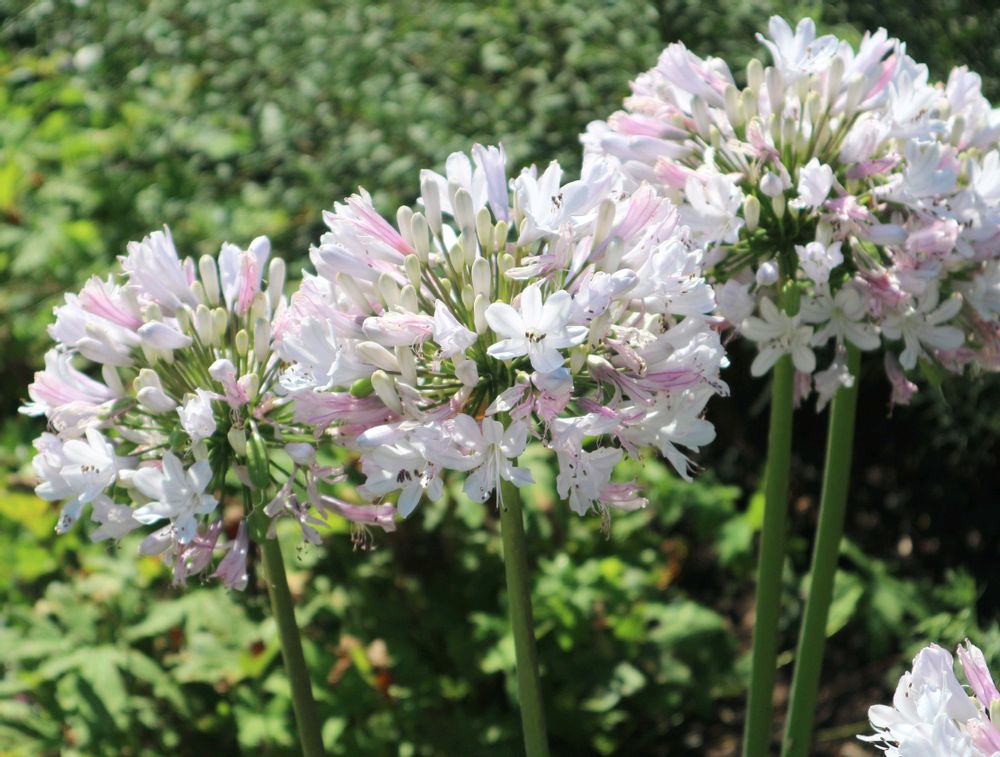 日射しの下では白く見えるけど、ほんのりピンク色が混じっているアガパンサス ガーデンクィーン。