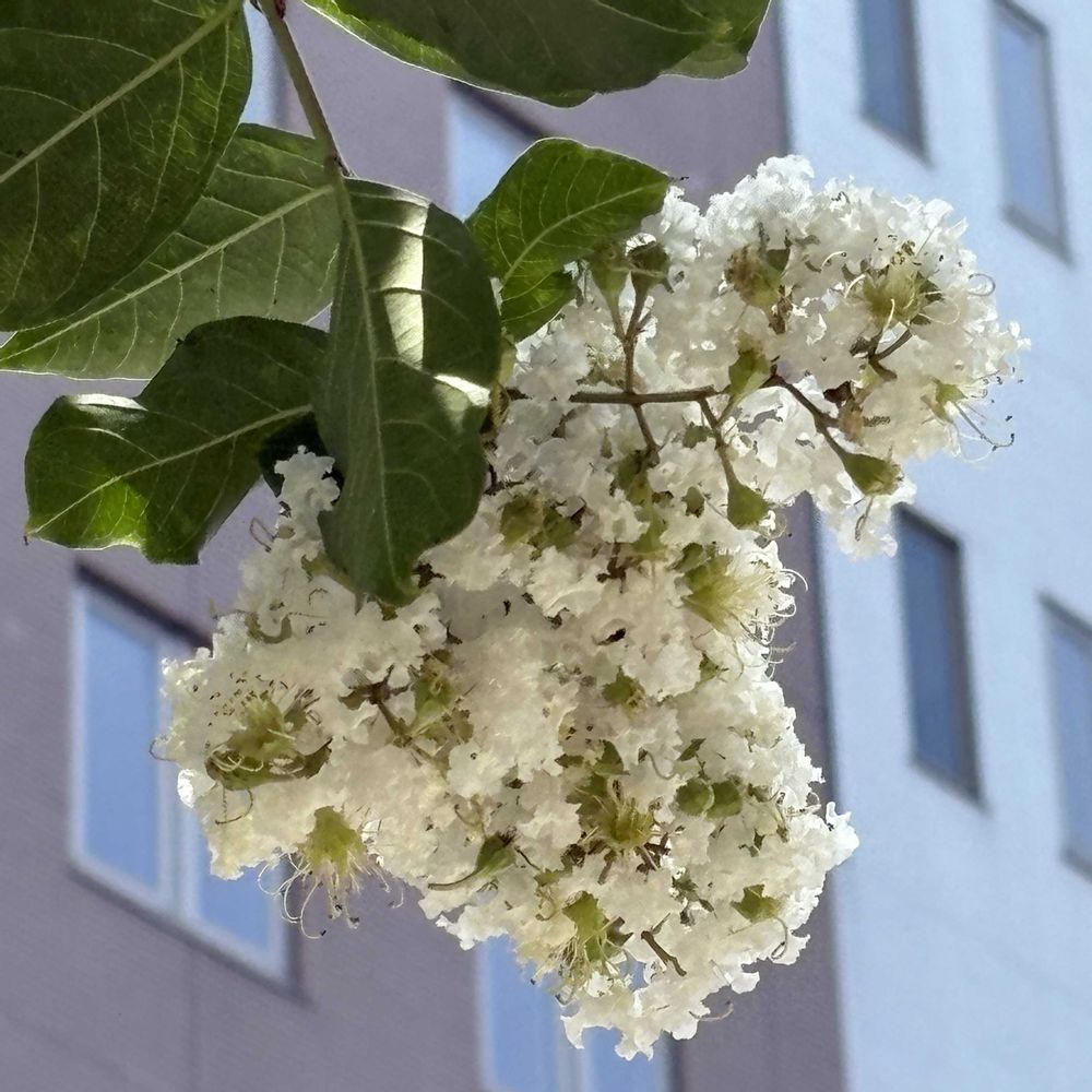 東京、あまりの暑さに上を見上げると白いサルスベリが咲いていました