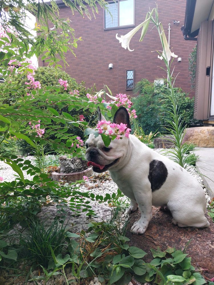 母の残した庭(ジャングル状態)を手入れすることになり、半分を犬用に芝生を張りきれいにしたら 花にも目覚めて❤️GSに迷い込んで来ました 幸せですね🍀🔰