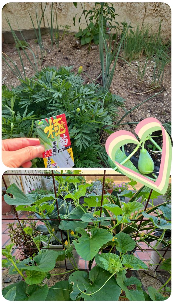 去年の残渣より発芽した瓜科のお野菜、カボチャかな?キュウリかな?マクワウリでした(*≧∀≦)人(≧∀≦*)♪ヤッター