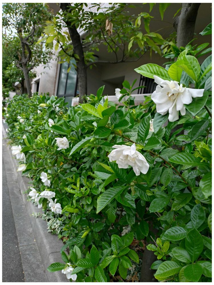 何度か通ったことのある道なのに クチナシの生垣とは花が咲くまで気が付きませんでした😅