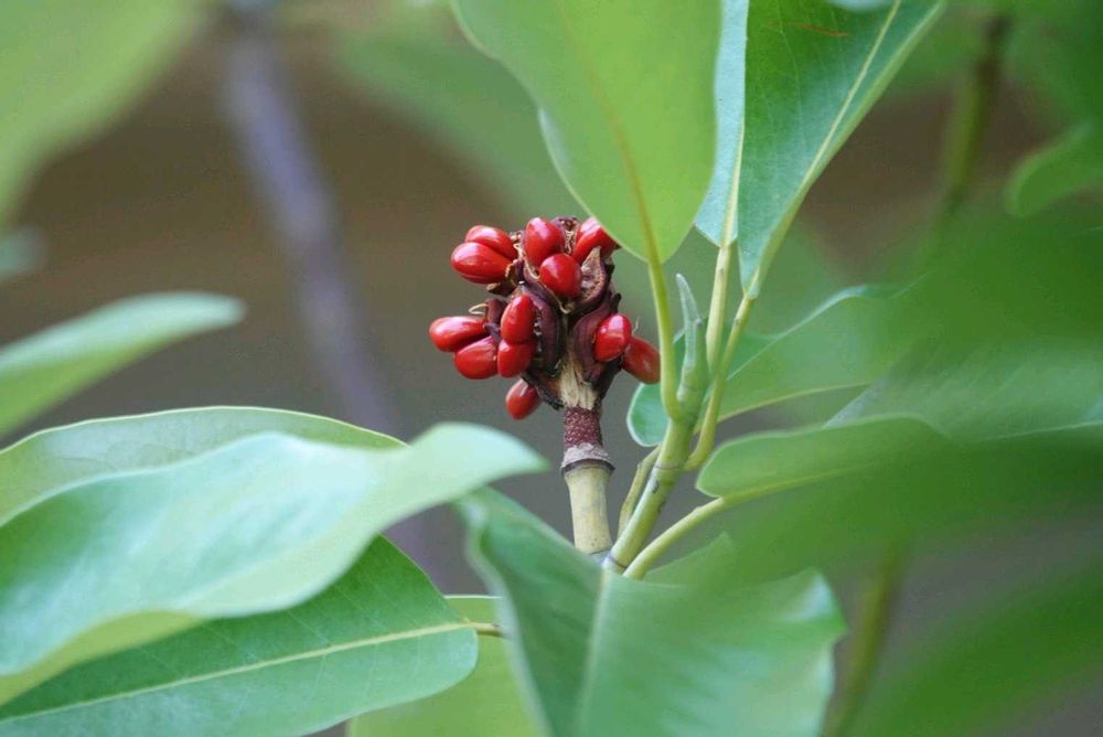 薄オレンジの蕾のようなもの(8/12)が見え(1、2)、実のようです。更に4日後の昨日の様子(3、4)まさにタイサンボクの実に似ています。タイサンボクの実のミニチュアのようです。薄オレンジの実は2つ在りましたが、落ちてしまったのか、昨日は1つしか在りませんでした。
