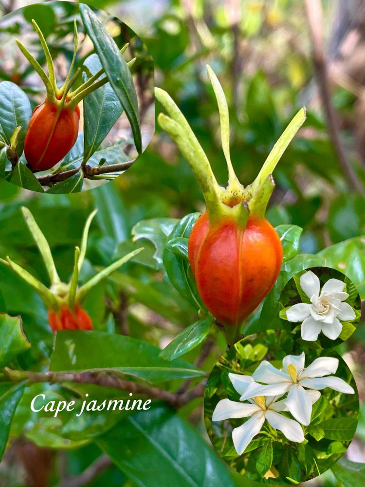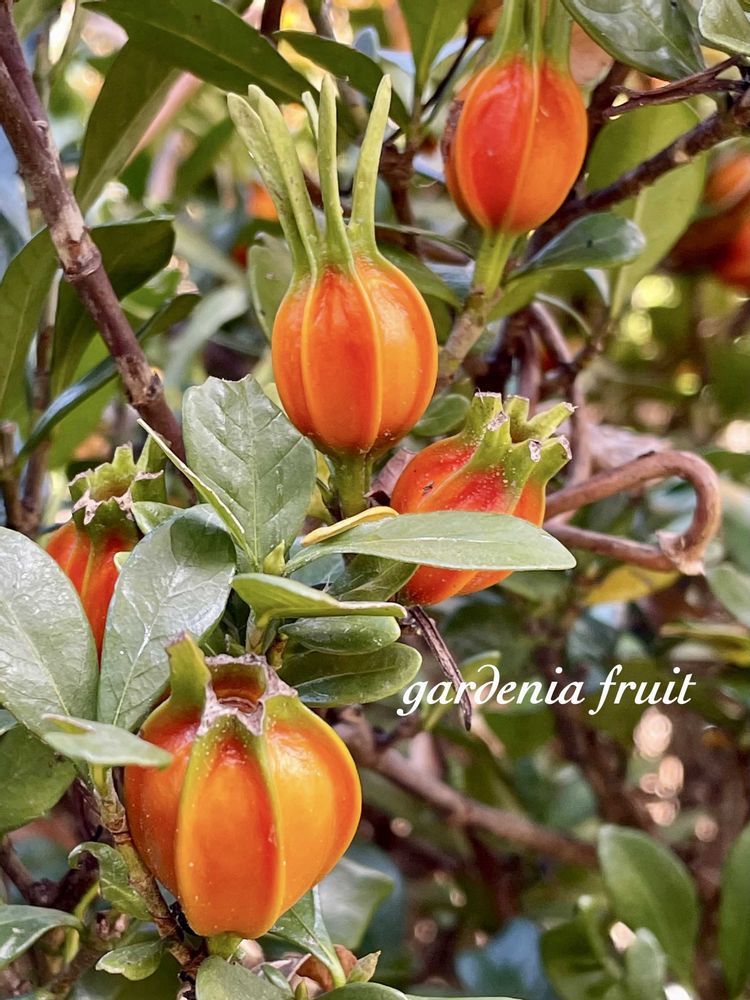八重咲きのクチナシは花弁が多いため受粉に必要な雌蕊が少なく、実がほとんどつきません。