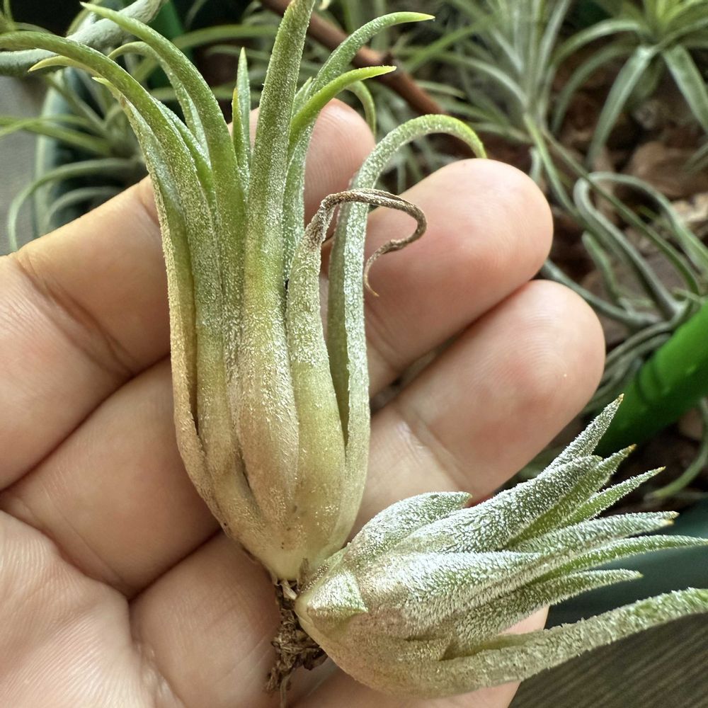 チランジアなどの成長ログ 2025/5/7開始 フォローいただく方が増えて嬉しいです フォローバックいたします 素人栽培、写真うまく撮れない イオナンタとディグエティが好き まとめて書いているので、連投が鬱陶しくならないようにたいてい投稿してから数日後に公開してます 環境:成長期はベランダ、それ以外は室内で管理(ベランダは曇り2000-直射40000lx程度) ソーキングしない派 蒸れなければ水は毎日ミスティング 液肥は硝酸カルシウムのやつ、週一 活力剤も液肥とは別に週一 堆肥も月一あげてるので株の黒汚れはそれ