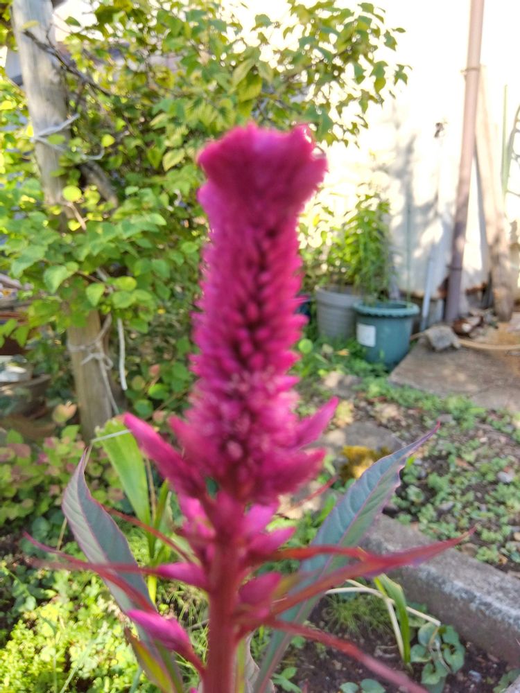 種が飛んできて咲いたケイトウです。お隣さんのは道路のすき間から🥰