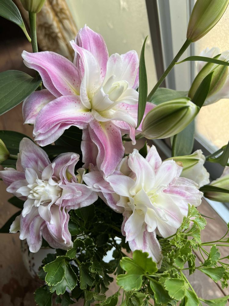 暑い日が続くからと、ツボミがまだ硬いこのユリを勧めてくれた花屋のお姉さん。ステキなお花をありがとう😊