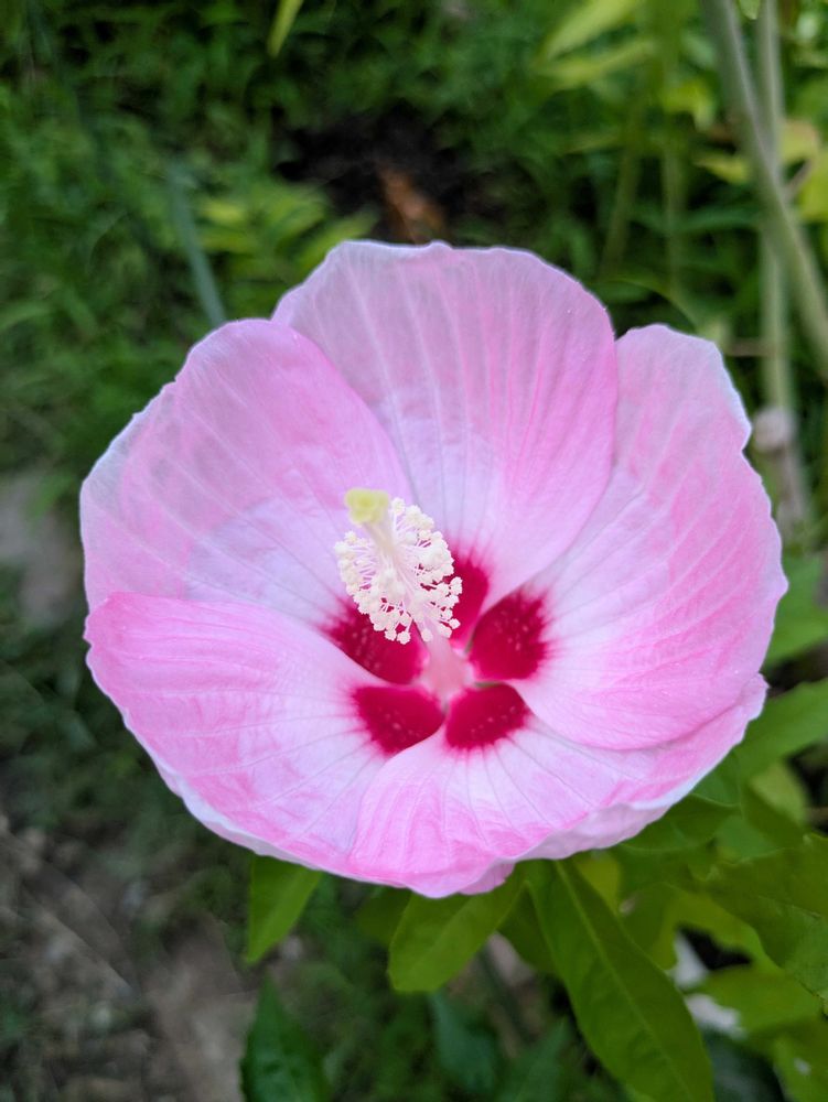 タイタンビスカス イリス 早朝でまだ開きかけです。