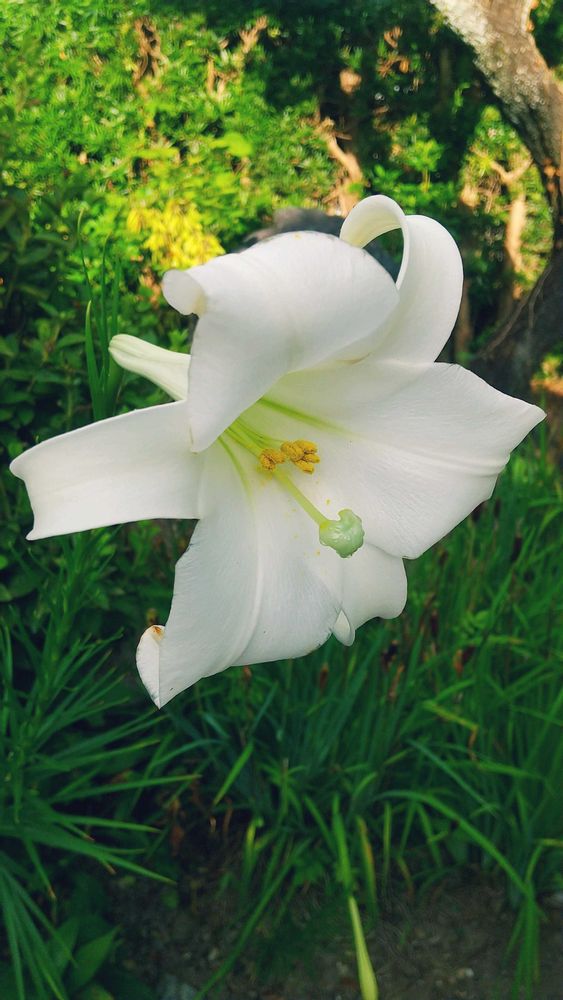 庭のあちこちで、タカサゴユリが清楚に咲いています🎵