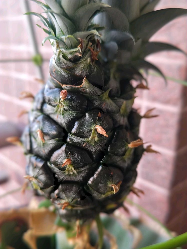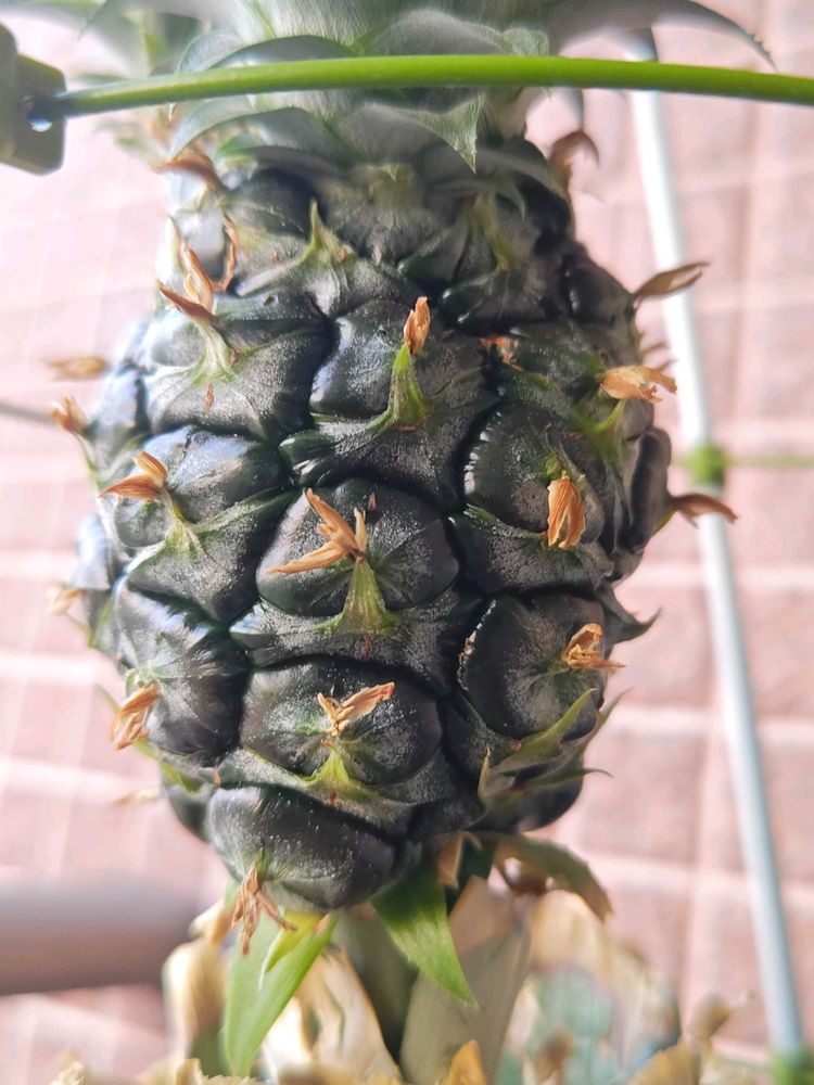 実🍍は今はまだ黒っぽいですが、まとめ拝見してると黒っぽい〜緑〜黄色く熟して行くように見えました。