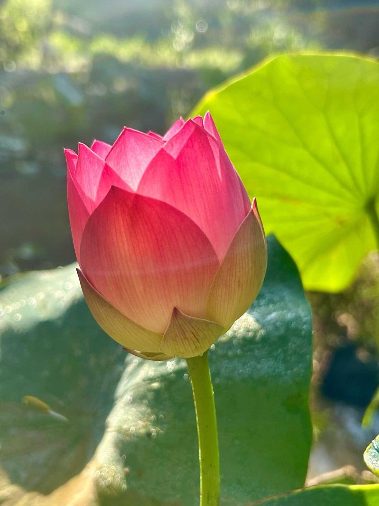 酷い水害にも負けず咲いた茶碗蓮🪷