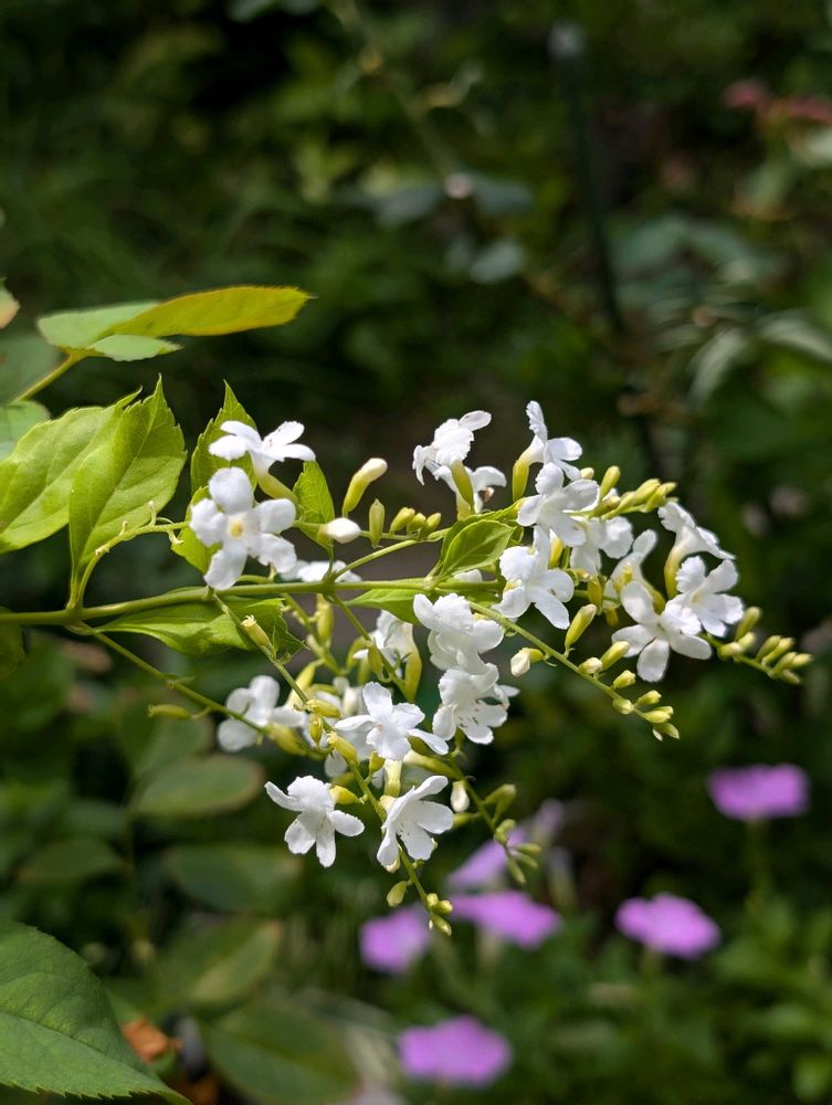 ①②6月に咲いてたクチナシ③セイロンライティア④⑤デュランタ