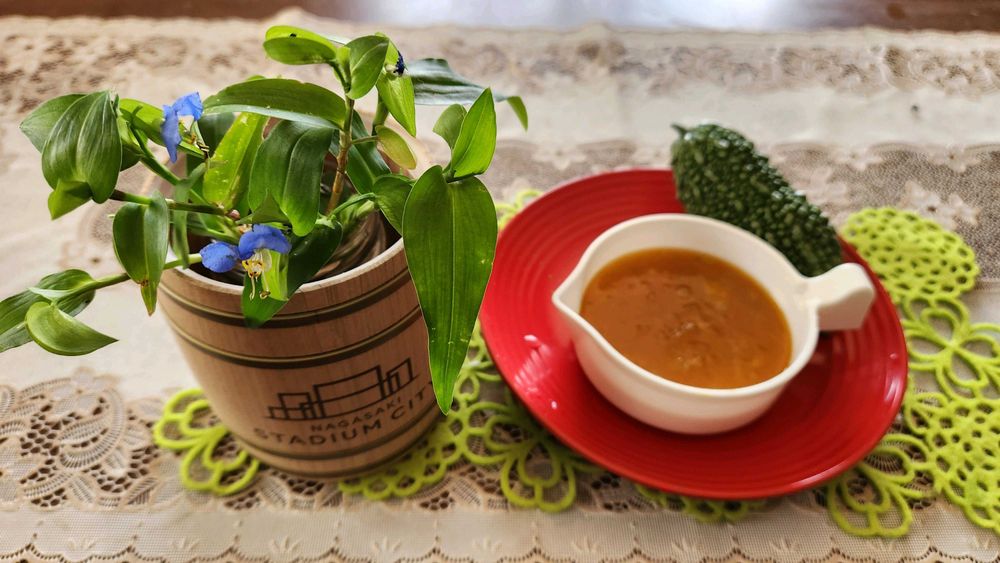 作ってみました〰!ゴーヤジャム!黄色くなったゴーヤをラッキー😃💕とばかりに収穫したのは初めてです!いつもは、あー取り忘れた😭と、捨てていたのに!で、お味は、、めちゃめちゃ美味しい!わがやは、カボスがたくさんあるので、カボス汁で、煮込みました。ゴーヤはほんのり苦味があるけど、ゴーヤらしくていい!良いことをお教えていただきました。ありがとうございます。これから、とりわすれの黄色ゴーヤを見つけるのが楽しみです!