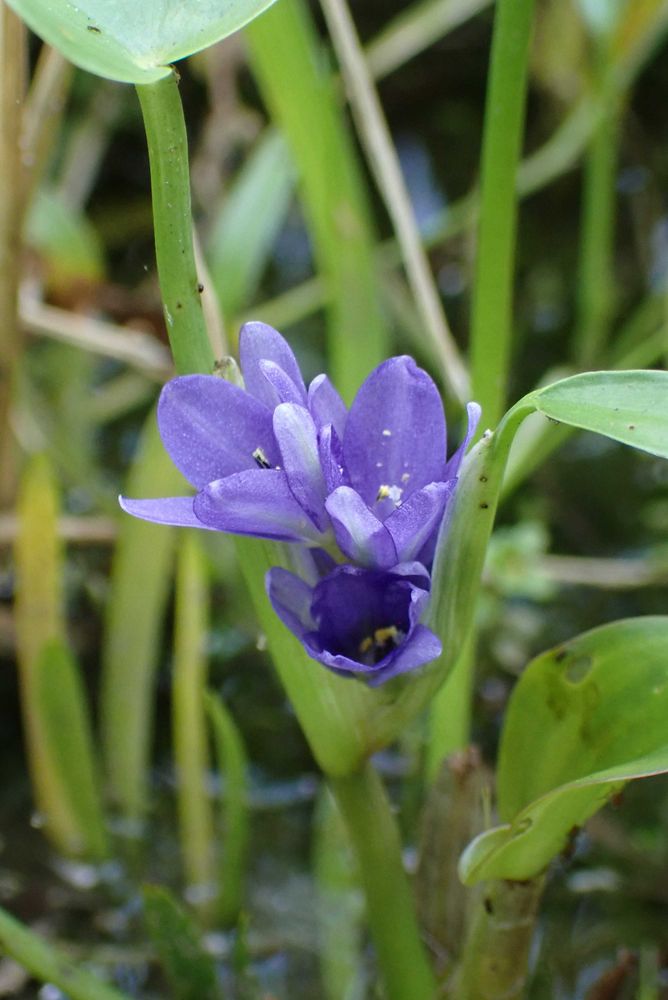 田んぼを覗くと小さな紫色のツボミを発見💡