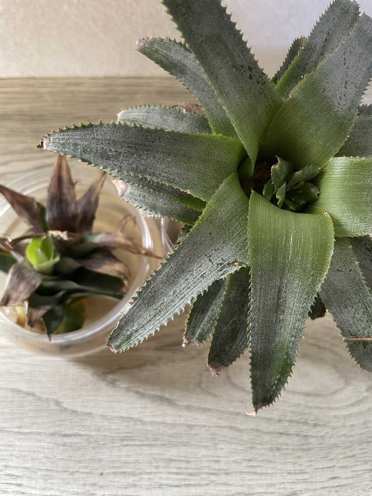 私もスナックパイン水耕栽培から土に植えて、実も収穫出来ましたよ。