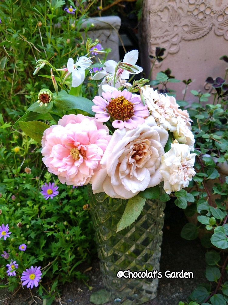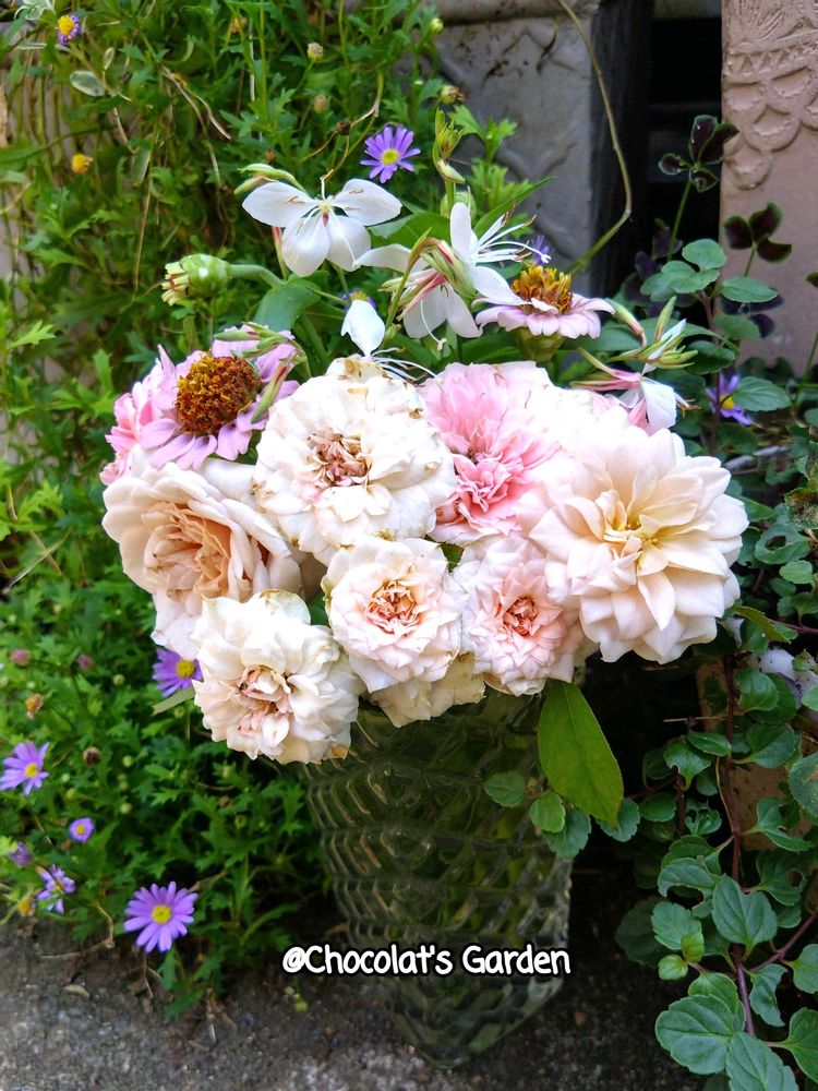 昨日今日とベージュピンク〜茶系が咲いたのでアレンジしてみました💐