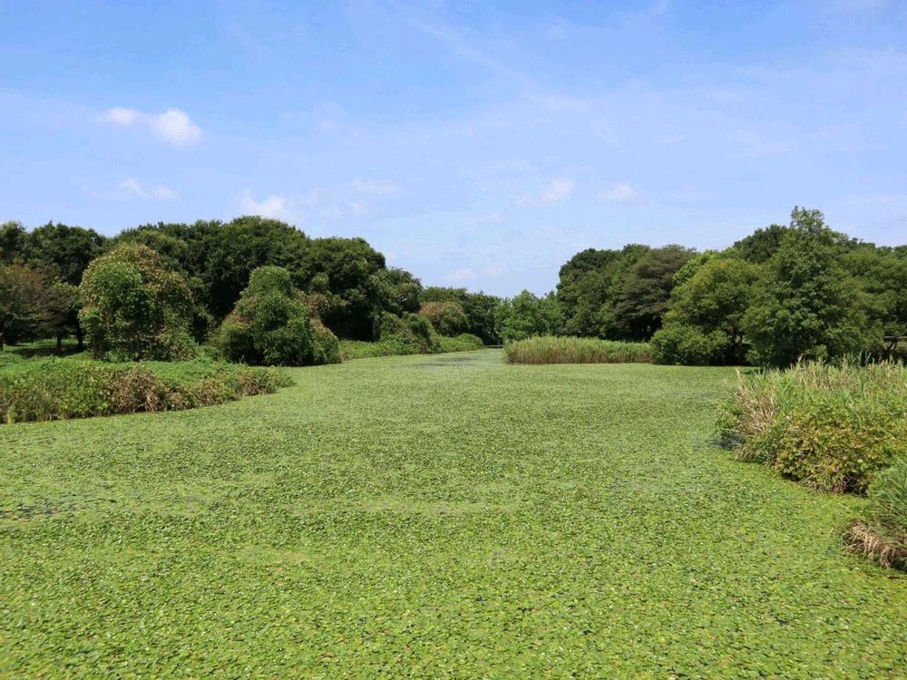 池を覆い尽くすガガブタ!もう水面見えないです(笑) モケモケの白い花咲いてますが望遠ないと撮れませんでした💦