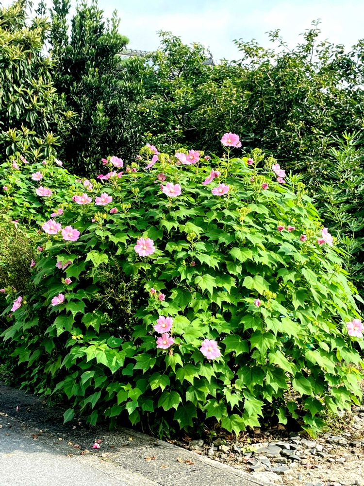 芙蓉の花,通り道の畑に,今朝の早朝散歩での投稿画像