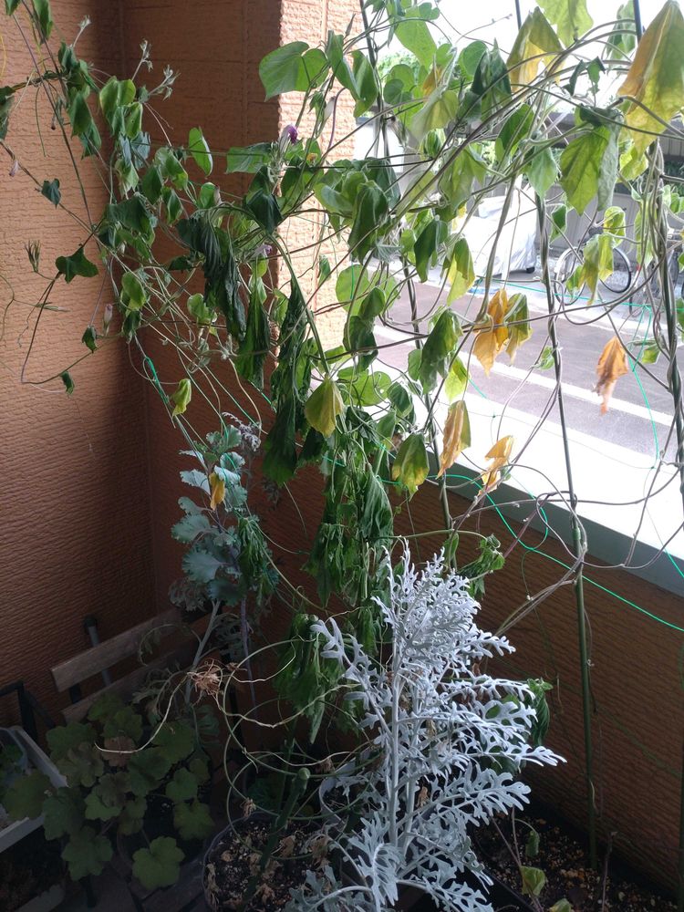 ベランダの朝顔は水切れ😭
