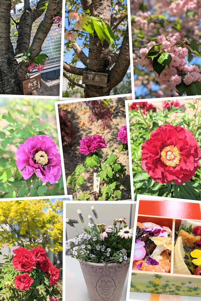 Googleフォトが「この日を覚えていますか?」と題してコラージュしてくれました🍀😊✨2023年4月10日㈪🌸鉢花生産日本一の愛知県🌿全国から集った鉢物のセリの様子を見学し、敷地内の🌸桜とボタンを見学しました.•*¨*•.¸¸♬エディブルフラワー(食べられる花)を使った「とよあけ花めし」を頂きましたψ(´ڡ`♡) オイシー♪愛知県豊明市