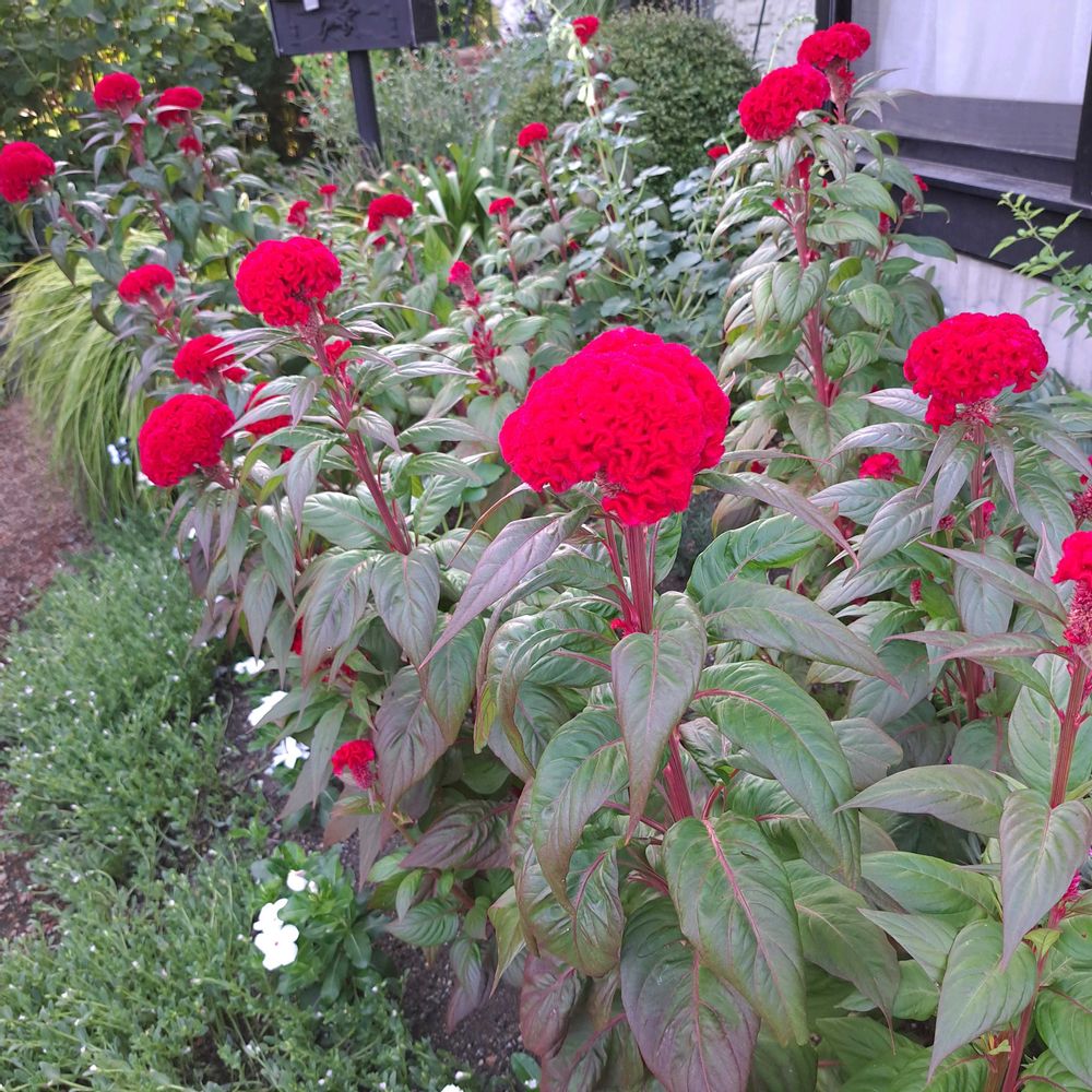 鶏頭って近頃色んな種類が出ていて、きれいですよ〜。我が家は、薄い黄緑色の鶏頭を植えています。実は私も古くさいイメージがあったのですが、カラフルになって秋植えには、いい仕事してくれますね。
