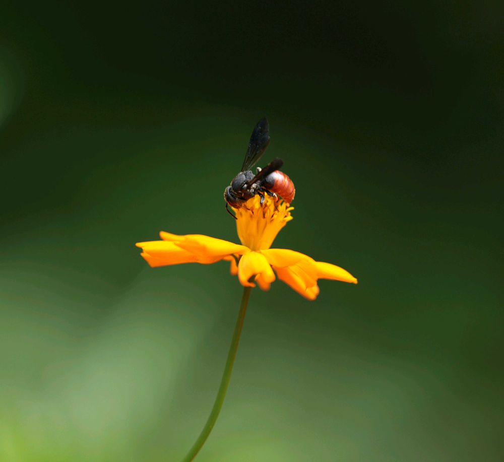 滋賀県長寿寺キバナコスモスと蜂