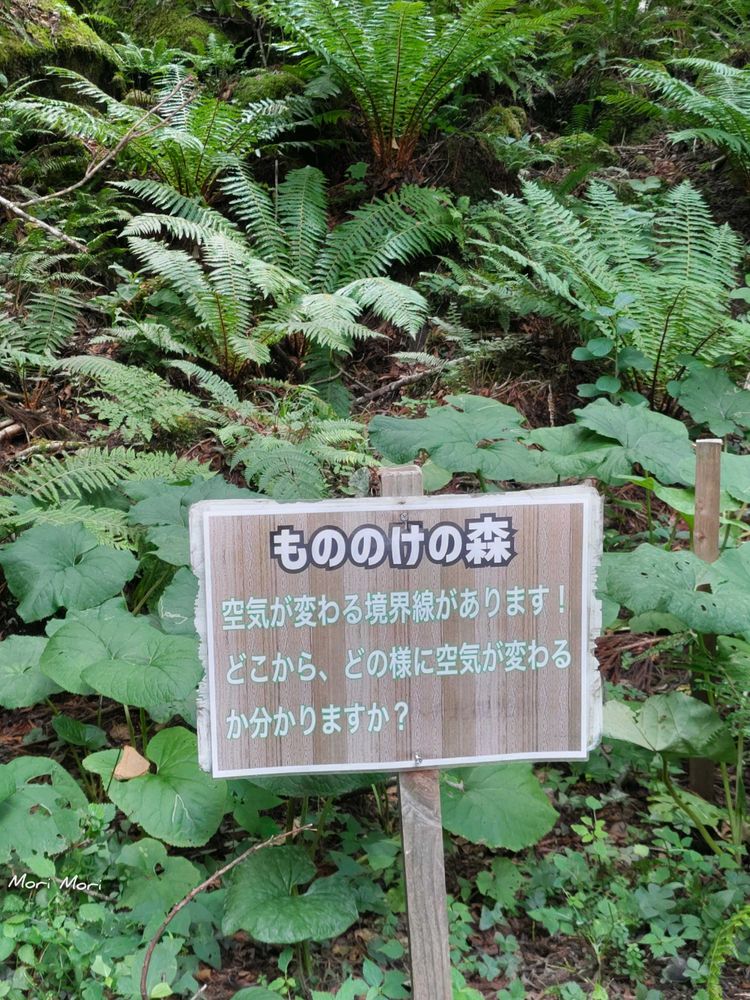 森の入口の立て札 本当にこの辺りから、まるでエアコンの風が吹いているのか?? と思うような冷た〜い風が吹き抜けています🌬️