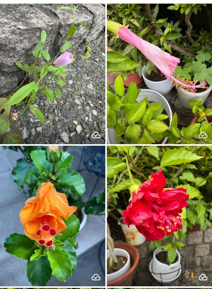 夏の花ハイビスカス🌺色んな色合いが お庭で 育てて 咲き出し開花は 楽しみワクワク💓ですねー(о´∀`о)