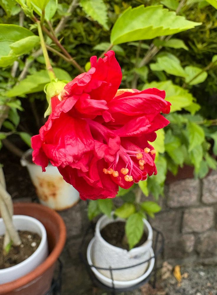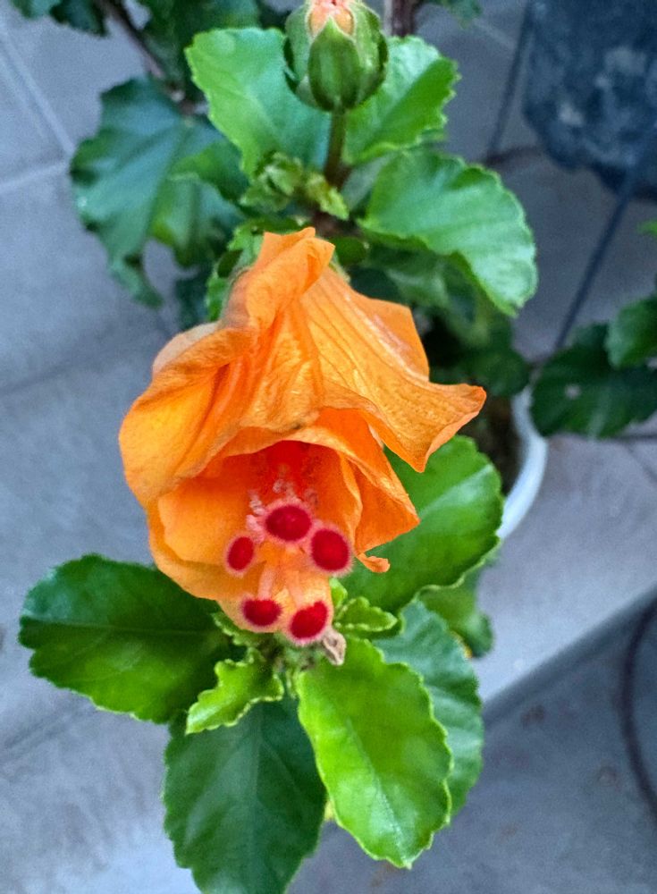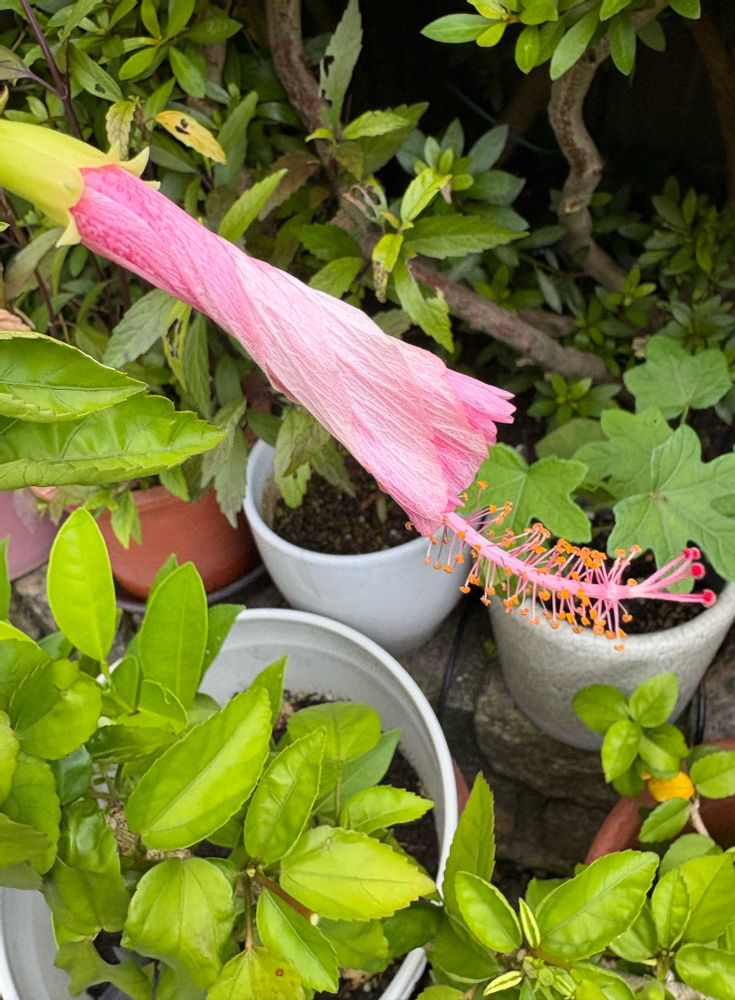 ハイビスカス 久しぶりにレッドフラミンゴが咲きそうですが今日は人間ドックに行くので帰った頃には既に萎んでいるかも