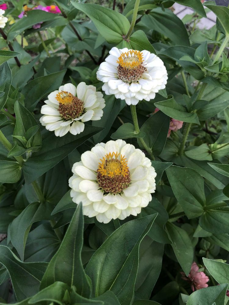 近くの公園に咲いている白い百日草🤍❶〜❹