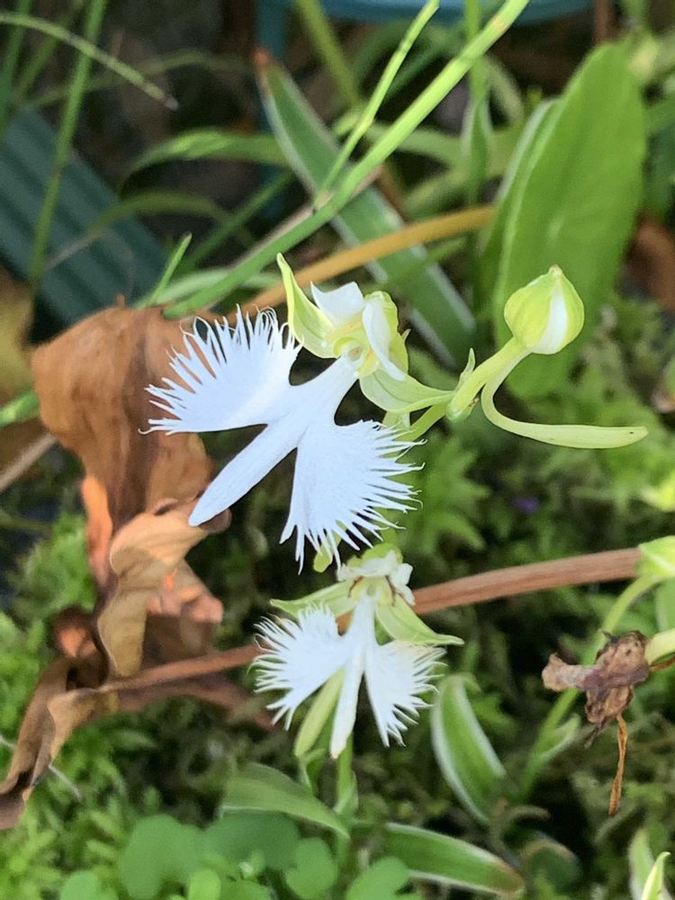 猛暑の中、やっと『サギソウ』が綺麗に開花しましたd(^_^o)