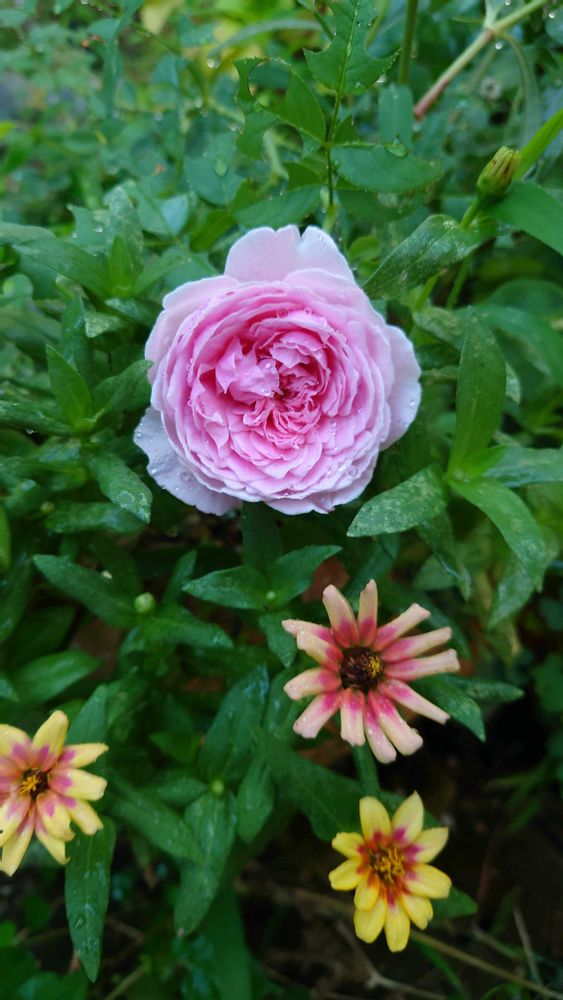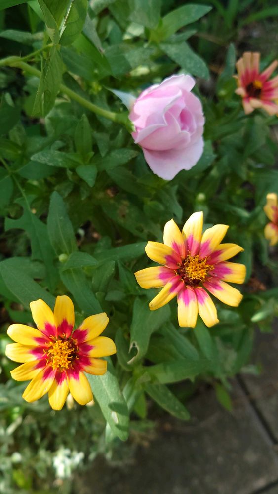 ヒャクニチソウ別名ジニア(まだまだ咲いてる)と咲いたバラ🌹