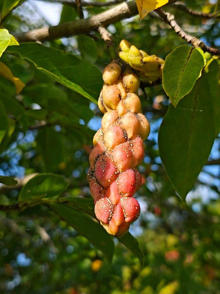 コブシの実、この木の東側は早いです。他はまた黄色くらいですね。