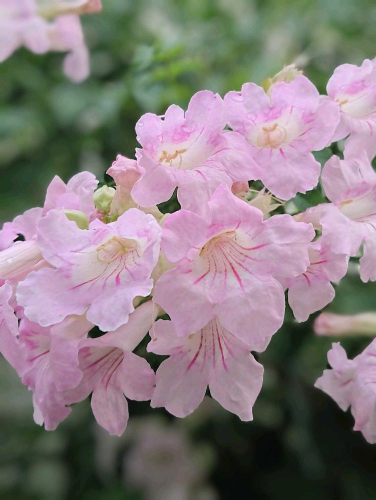 オレンジ色の鮮やかなノウゼンカズラに見慣れた後に、優しげなピンクノウゼンカズラが咲き始めます🩷