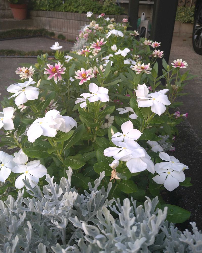 猛暑の中…白いニチニチソウも爽やかに咲いて涼しげな花壇ですね👏👏👏