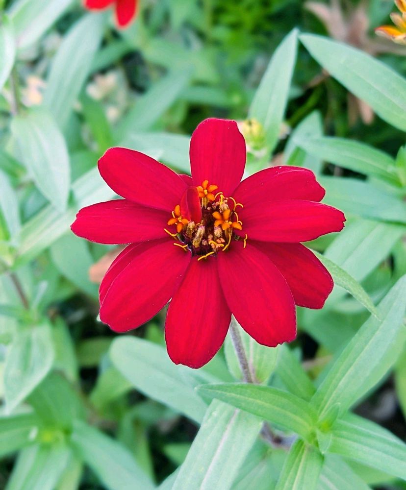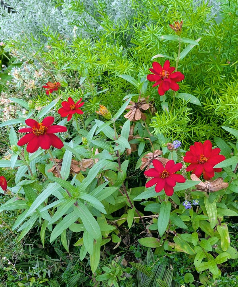 真っ赤な百日草❤️❤️さん、これもジニアなんですね〜🌿❤️🌿❤️