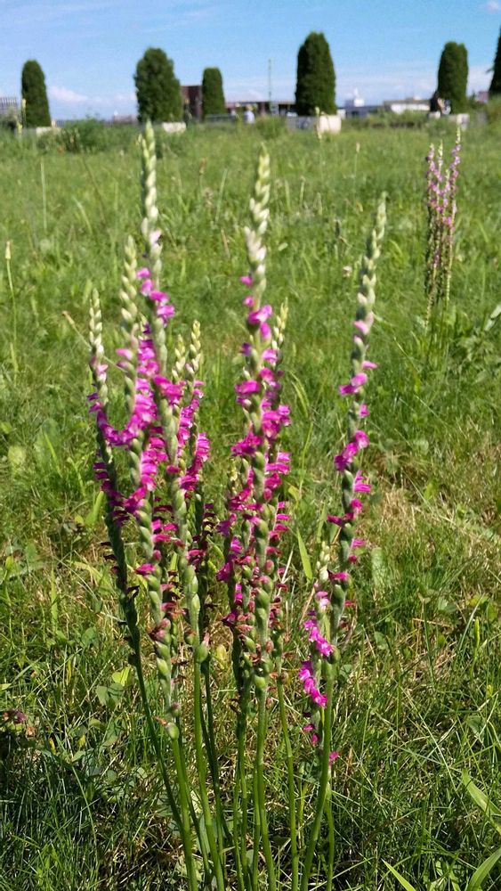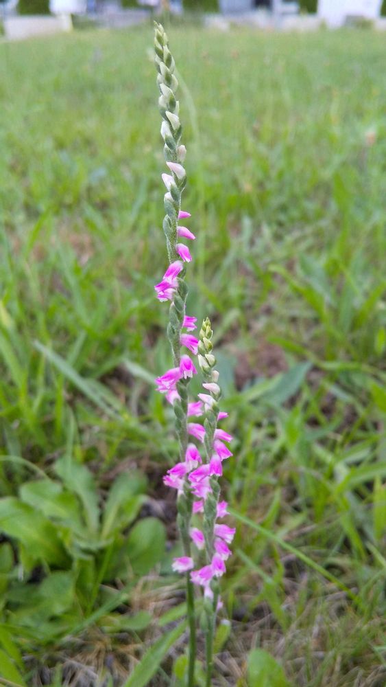 和名ネジバナ(学名スピランセス)です 花姿そのままに 和名は「ねじれた花序」 学名はギリシャ語の"螺旋"の"花"に由来するそうです 今年も近くの緑地広場で 春以降の何度かの草刈にもめげず 草丈を伸ばし可愛らしい花を咲かせてくれています 写真でははっきりしませんが ラン科でピンクの5弁と白い唇弁を持ち 螺は右巻きと左巻き両方あるそうです 2枚目の写真の1本の他は全て右巻きでしょうか ねじれていない個体もあるようで いずれ出会いたいものです