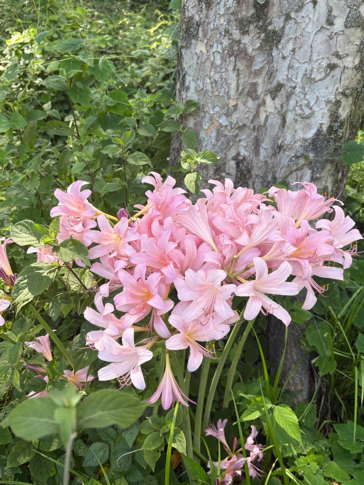 昨日、子ども食堂のボランティア活動に行く途中の石神井公園を通った時、【ナツズイセン🩷】が咲いていました🎵