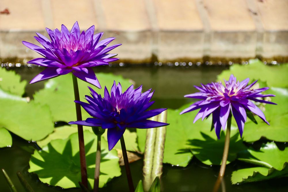紫色のスイレンは、「キング オブ サイアム」と呼ばれ、唯一の八重咲きタイプ。タイで作出🇹🇭濃い青紫で、雄しべの大部分が花弁化することで八重咲きに。