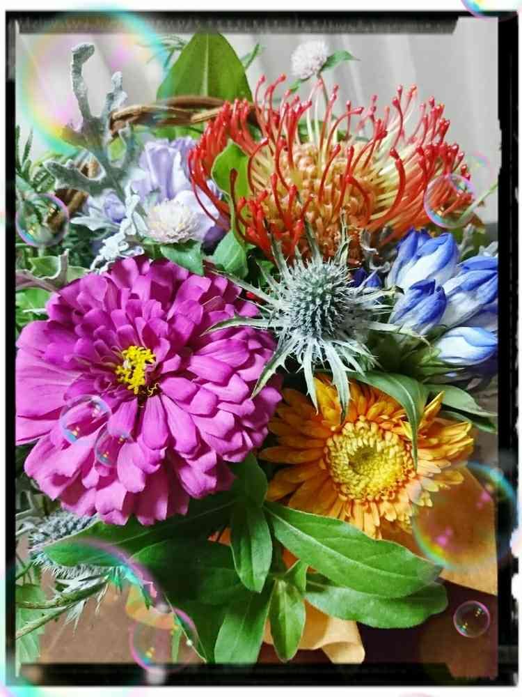 お庭のお花を摘んで、この前のアレンジメントのお花を一部交換しました🎵🎵🎵