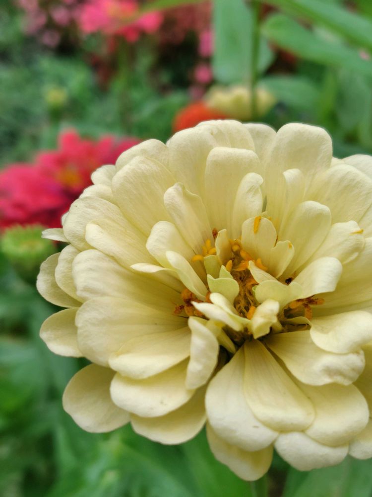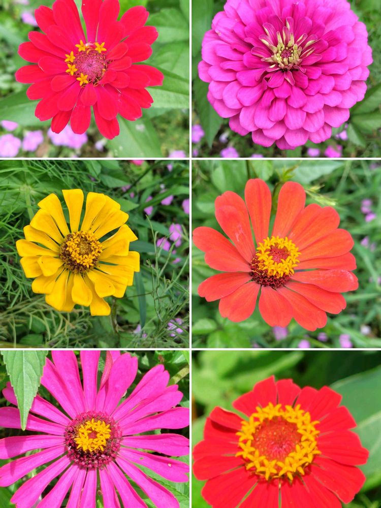 舌状花は原種では赤みを帯びた紫色から淡い紫色で、筒状花は黄色から橙色であるが、現在では青色を除いてほぼあらゆる色のものがある。