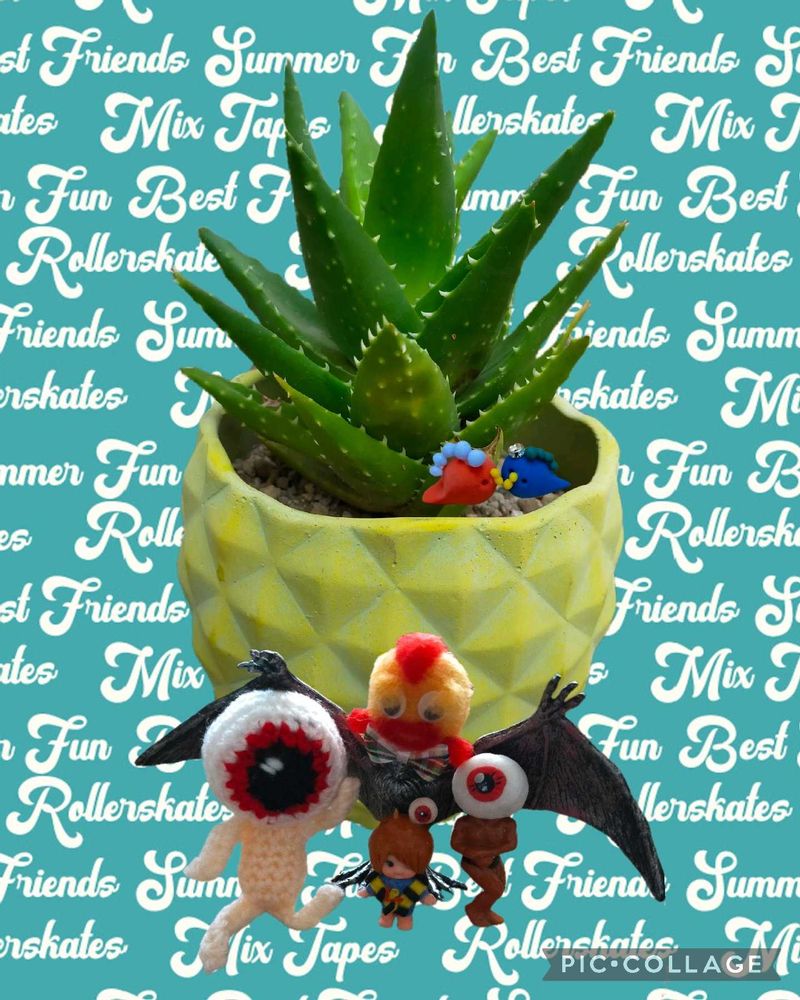 先日のパイナップル🍍鉢に、ピンクパンサーさんからのアロエ不夜城をINしたよ!☺