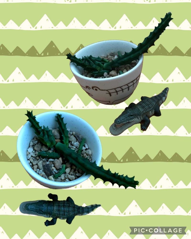 2枚目 以前に穴を開けたワニ🐊鉢にガガ樣をワニ風にIN♪
