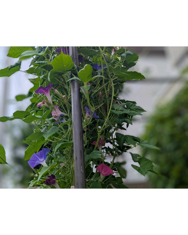 義母がサヤエンドウや、インゲンなど弦のものを育てていたので、私も〜って そこに朝顔植えてみたんだ😁
