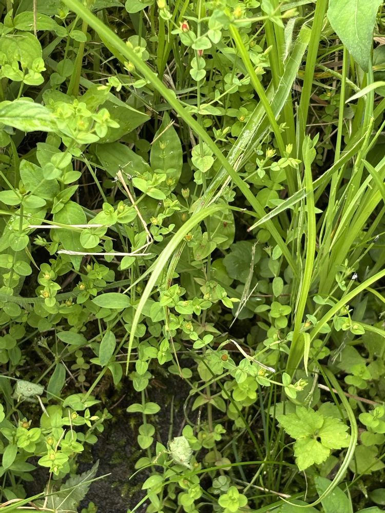 近くの公園の水路脇にのびのびと生えているコケオトギリに出会いました♪