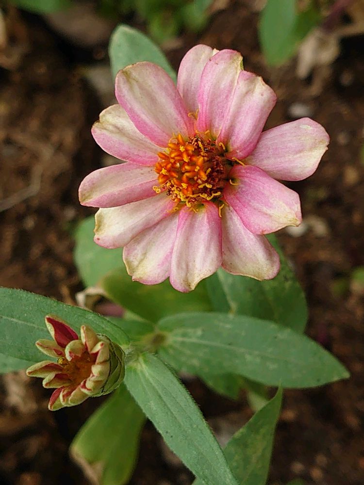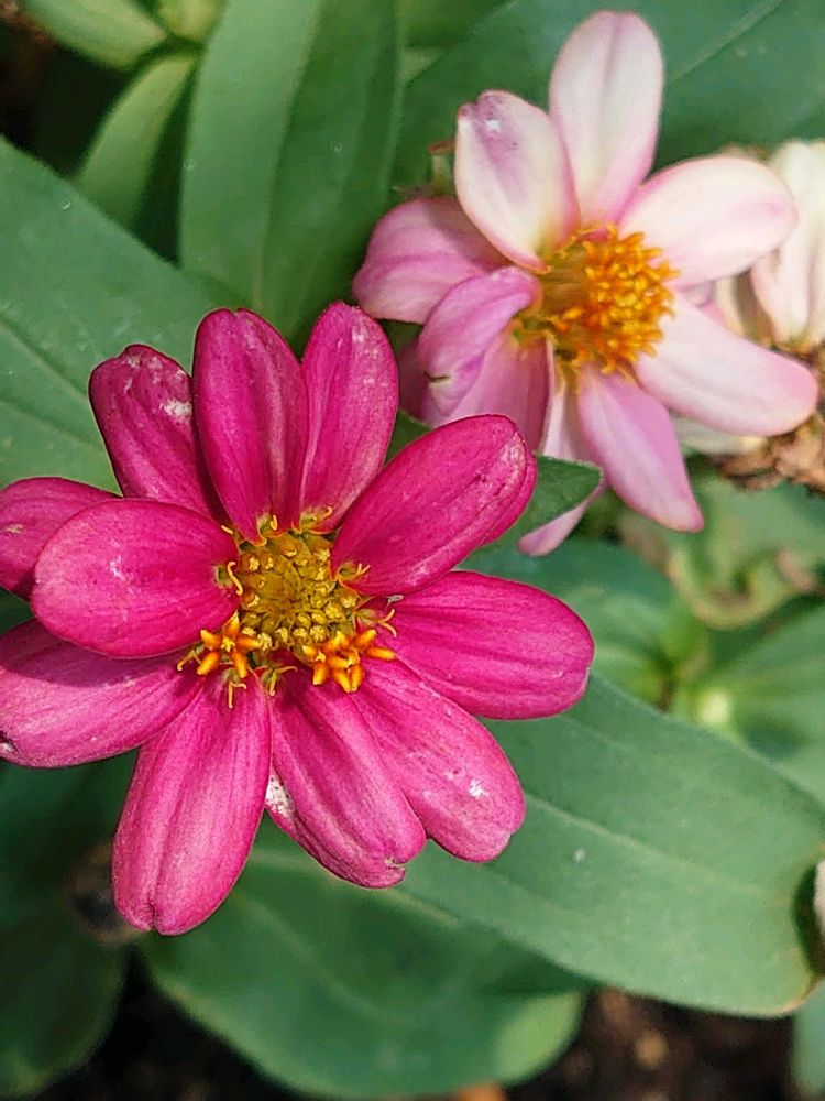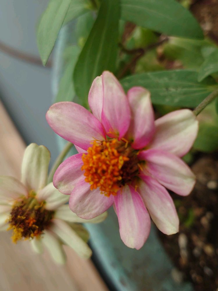 1️⃣〜5️⃣今日のお花ヒャクニチソウ(百日草)🌸🌼🌸白に少しビンクが入った感じが好きです😌💕