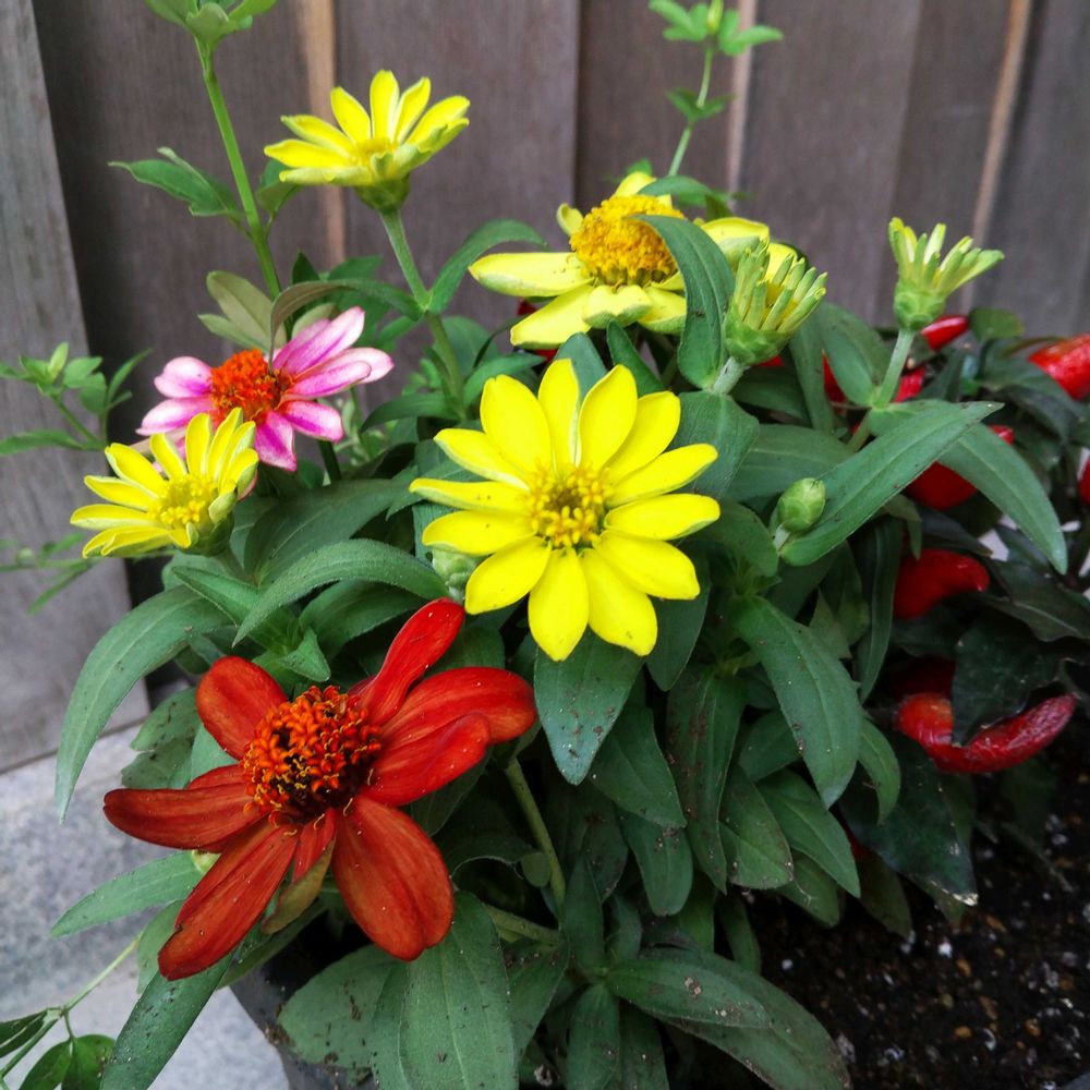 別名 ジニア ① お出掛け先 ② 自宅の寄せ植え