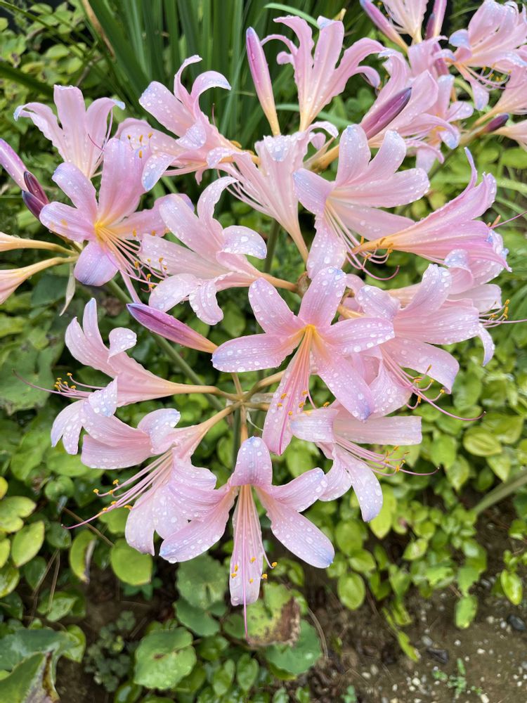 母が植えた夏水仙があちらこちらで咲き始めました。夏水仙、別名はリコリスともいうのかも。